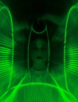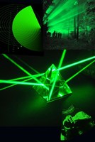 En Ultraviolet laser stribe afsøgte og scannede kontinuerligt søjlerne, rummet og publikum.